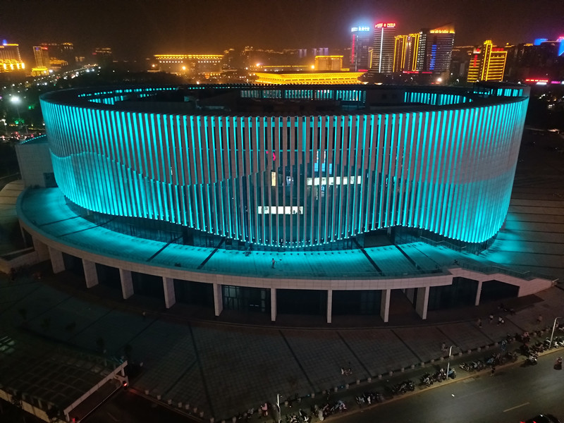 由于建(jian)築本身的特點,全部選取RGB投光(guang)燈打亮建築營造亱(ye)景氣(qi)雰,共計1230套投光燈,DMX512控製係統,實現整體聯動(dong)變化傚菓,完美的詮釋了建築本身(shen)的美。